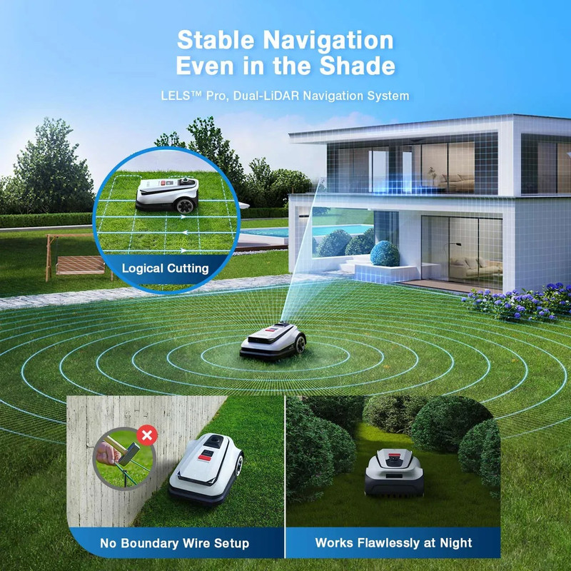 Deze robotmaaier werkt volledig zonder begrenzingsdraad dankzij LiDAR en AI-navigatie, waardoor de installatie eenvoudig en snel verloopt zonder graafwerk of kabels. Hij detecteert en vermijdt meer dan 200 soorten obstakels, wat zorgt voor een veilige en efficiënte werking.