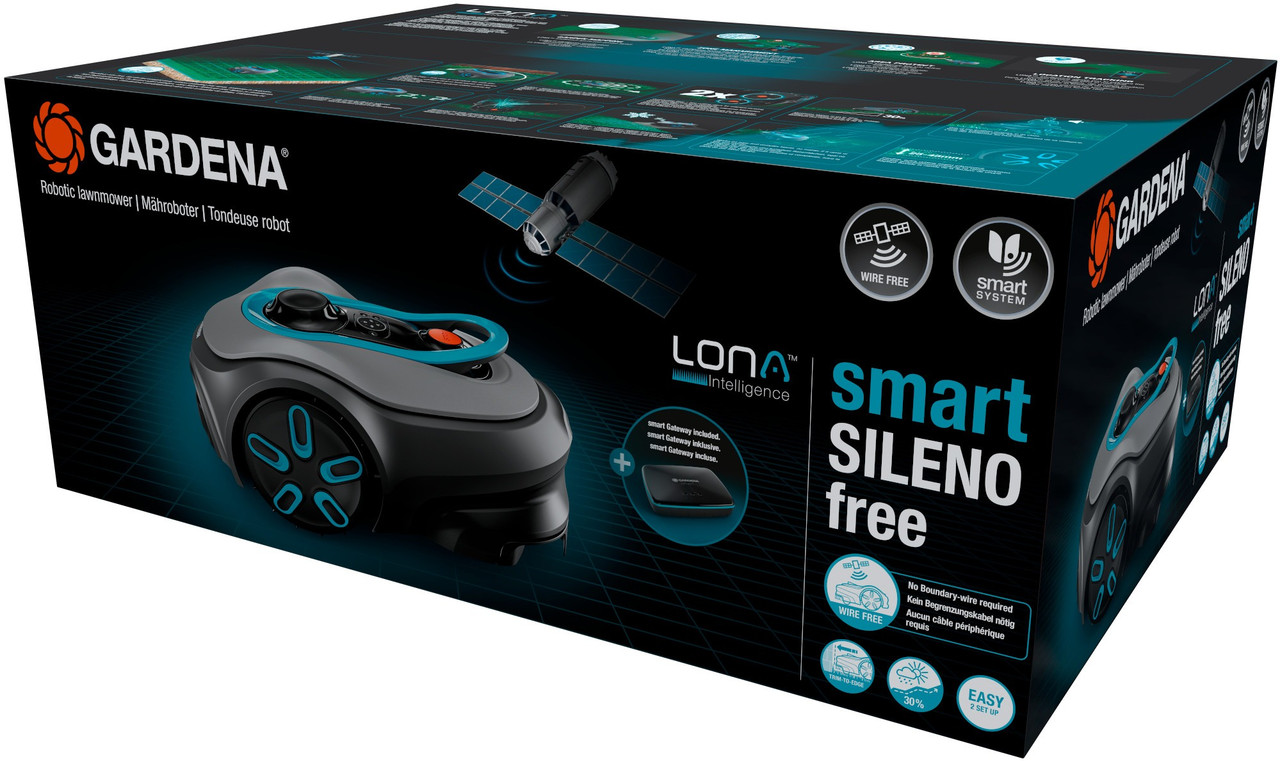 De Gardena Smart SILENO Free 1200 robotmaaier vertegenwoordigt de nieuwste generatie robotmaaiers zonder kabel. Dankzij de innovatieve satellietgebaseerde navigatie en AI LONA™ Intelligence kan deze robot jouw gazon volledig automatisch beheren zonder installatie van een begrenzingsdraad.